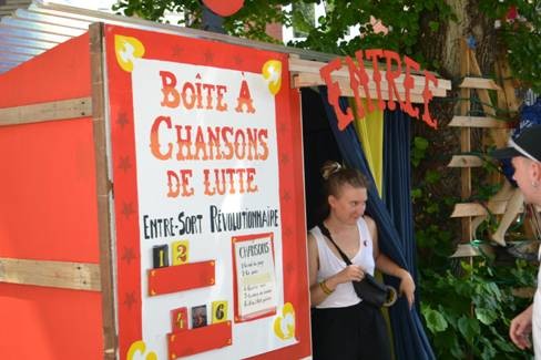 14h00 (en continu jusqu’à 18h00): Collectif La Mêlée: « Entre-sort Révolutionnaire – Boîte à chansons de lutte »
